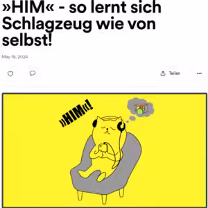 Musikschule, Besuch vom Lokalradio: »Schlagzeug hast Du Dir sicher ausgesucht, weil man da mal so richtig draufhauen kann?« Darauf mein 8-jähriger Schüler: »Nein, weil es so schöne Töne macht!« Beste »Drum-Meditation« Kurzbeschreibung ever!